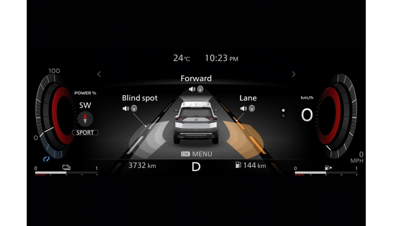 Disematkan fitur keselamatan Nissan Safety Shield, termasuk Forward Emergency Braking, Blind Spot Warning, dan Intelligent Cruise Control.